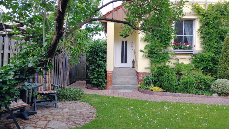 In der separaten Gartenecke gibt es eine kleine Sitzmöglichkeit.
